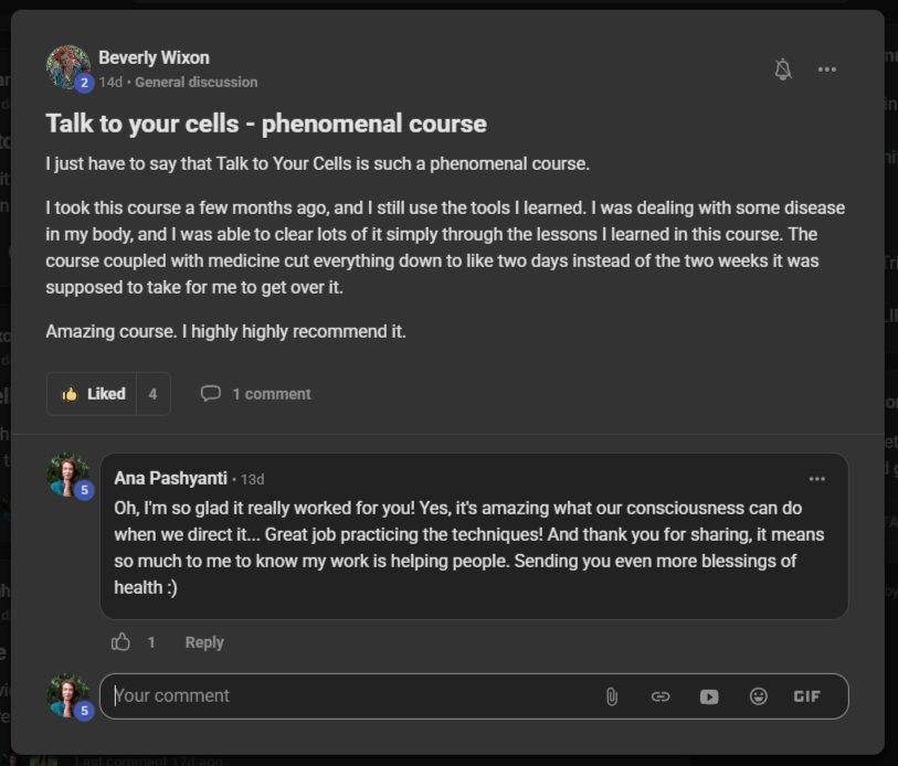 BONUS COURSE! Learn to prepare your body and energy field for your self-healing sessions. Complete this course before starting Talk to Your Cells to make your healing more effective and efficient and hear more clearly what your body has to say. Instant access.